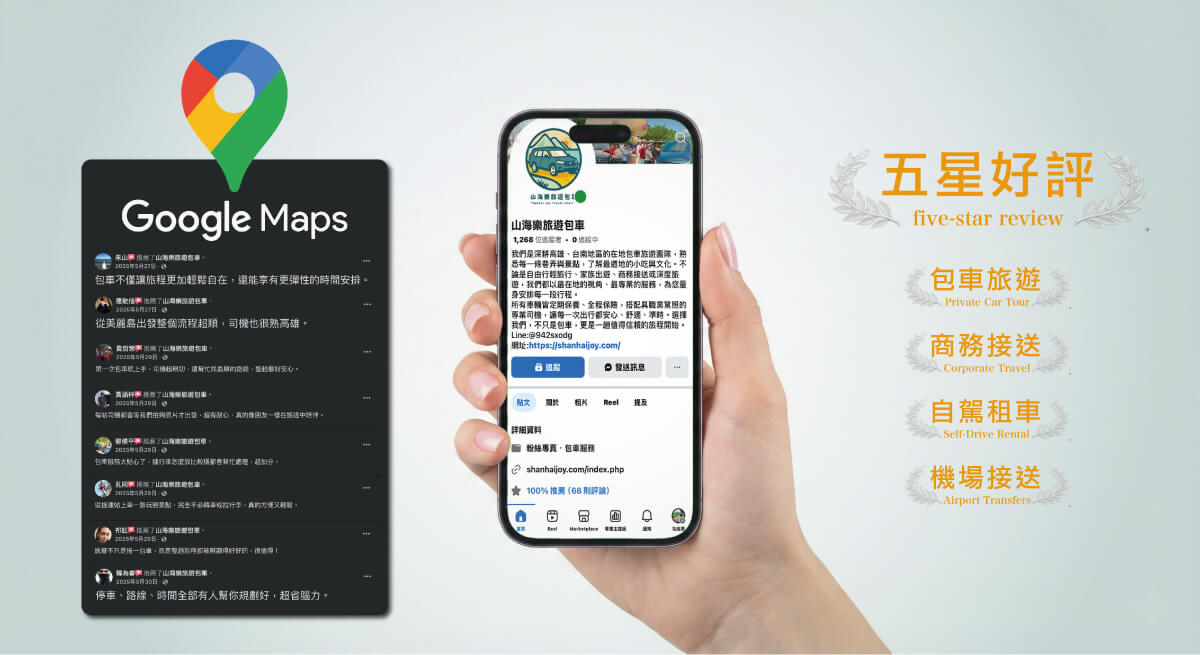 自我評價往往帶有主觀色彩,但來自實際體驗過服務的旅客回饋,才是真正具有參考價值的依據。山海樂在旅遊平台與合作通路上累積了上千則正面評價,長期獲得國內外旅客的高度肯定,這些真實回饋正是我們服務品質的最佳證明。